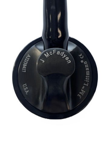 When you've found the stethoscope you'd like to purchase, check "yes" for engraving and enter your desired text. Text is limited to letters.