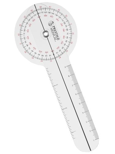 This protractor goniometer is designed to measure the range of motion in a patient’s joints. Measures a full 360 degree range in single degree increments. Text is large and easy to read. Conforms to ISOM standards. Made of heavy-gauge clear plastic for greater durability. 6 inch size